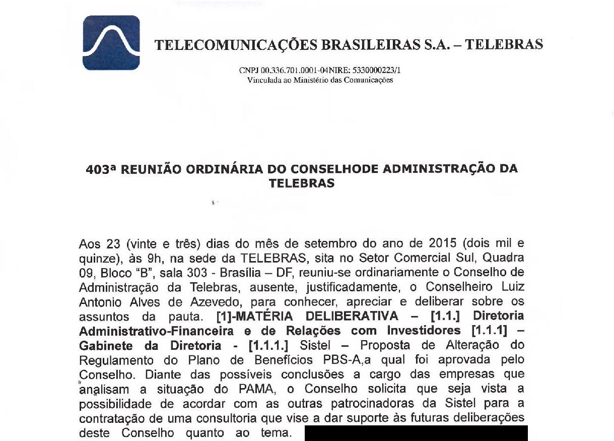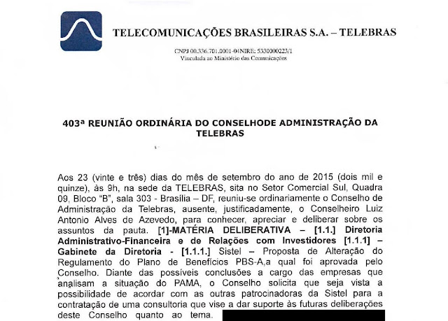 Finalmente concluímos, da mesma forma como já fizeram os conselheiros eleitos apoiados pela Fenapas, aquela Federação e suas Associações de Aposentados filiadas, que além de colocarmos em risco o futuro do plano PBS-A (existem estudos na Previc para reduzir a reserva de contingência dos planos para 10% da Reserva Matemática, em vez dos 25% atuais), seriam entregues R$ 3,3 bilhões para a Sistel gerir o déficit atuarial do PAMA (que não foi demonstrado e divulgado), o qual foi gerado nesta última década exatamente pela absoluta falta de contribuições das patrocinadoras que monopolizam o conselho deliberativo da Sistel.