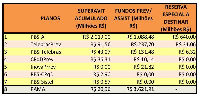 - possuía um patrimônio de R$ 17,1 bilhões aplicados 86% em renda fixa, 9% em renda variável e 3,5% em imoveis;